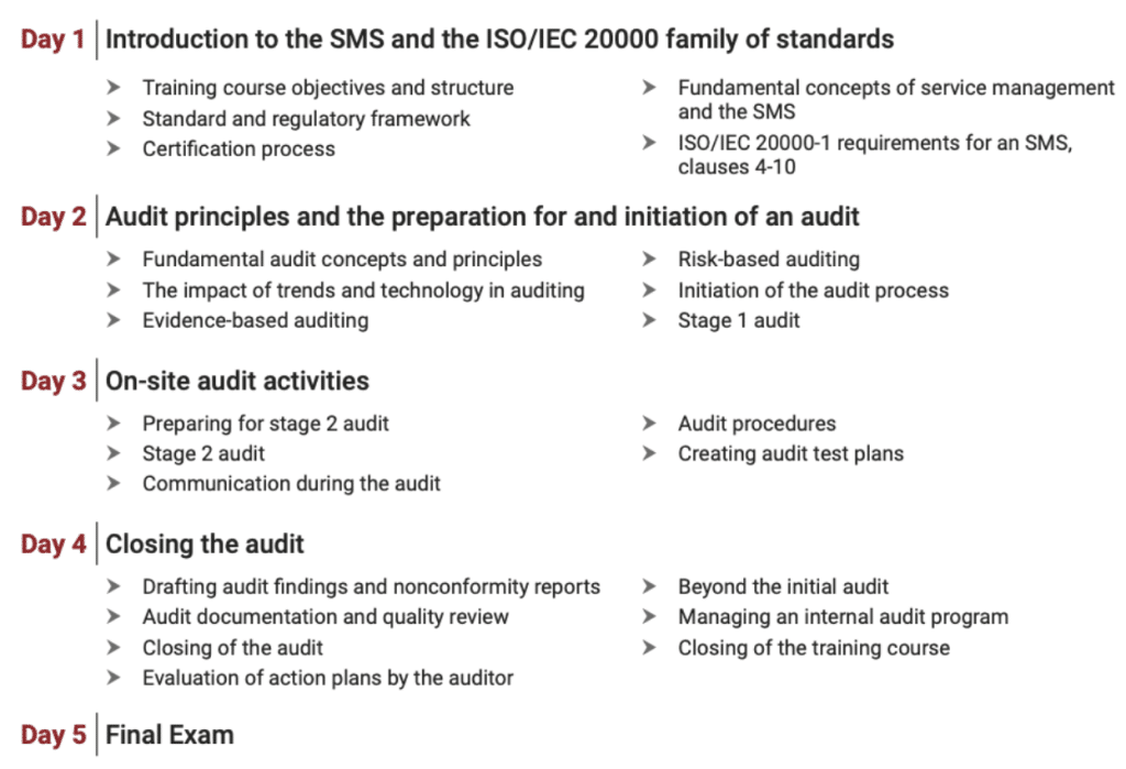 For more information, please see the:Fifalde-ISO-20000-1-LA-EN-Course-Description-EN-V1.1.PDF